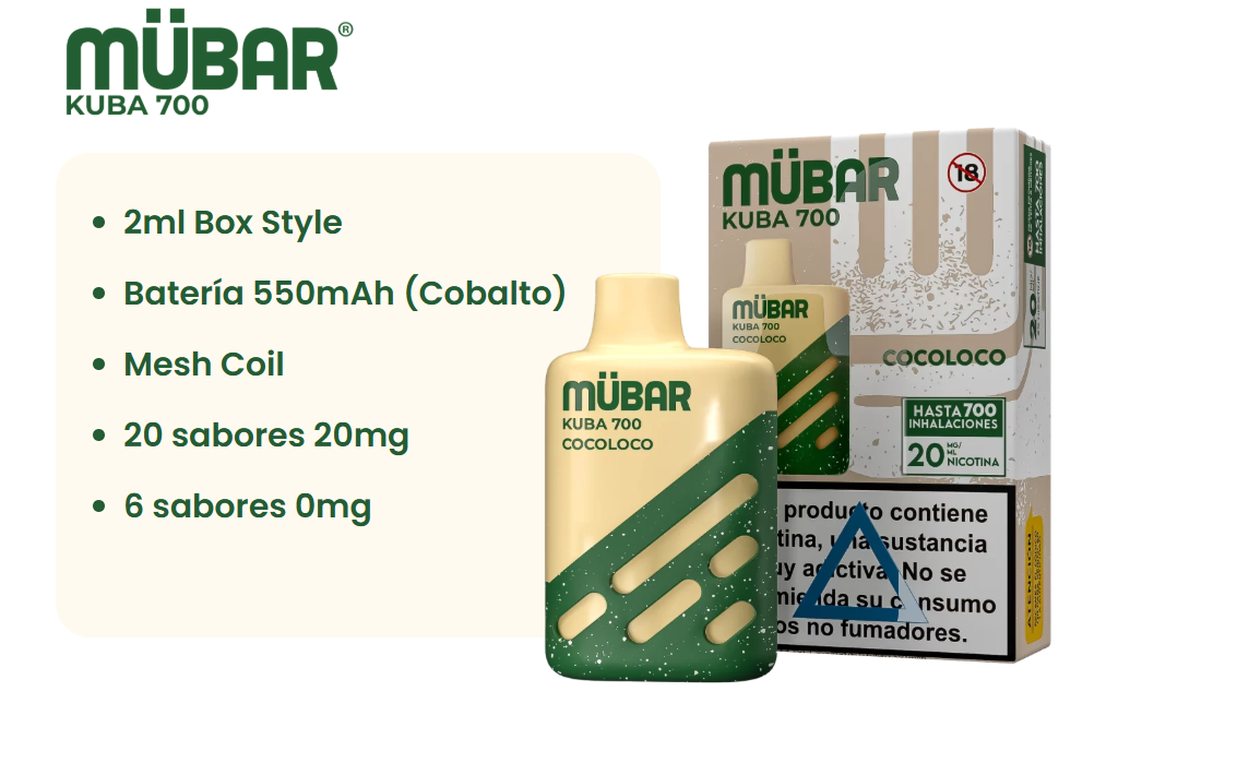 El Mubar Kuba 700 con sabor a cereza y arándanos nos ofrece una interesante combinación de estos dos dulces sabores donde la cereza se mezcla con tonos de frutos rojos.